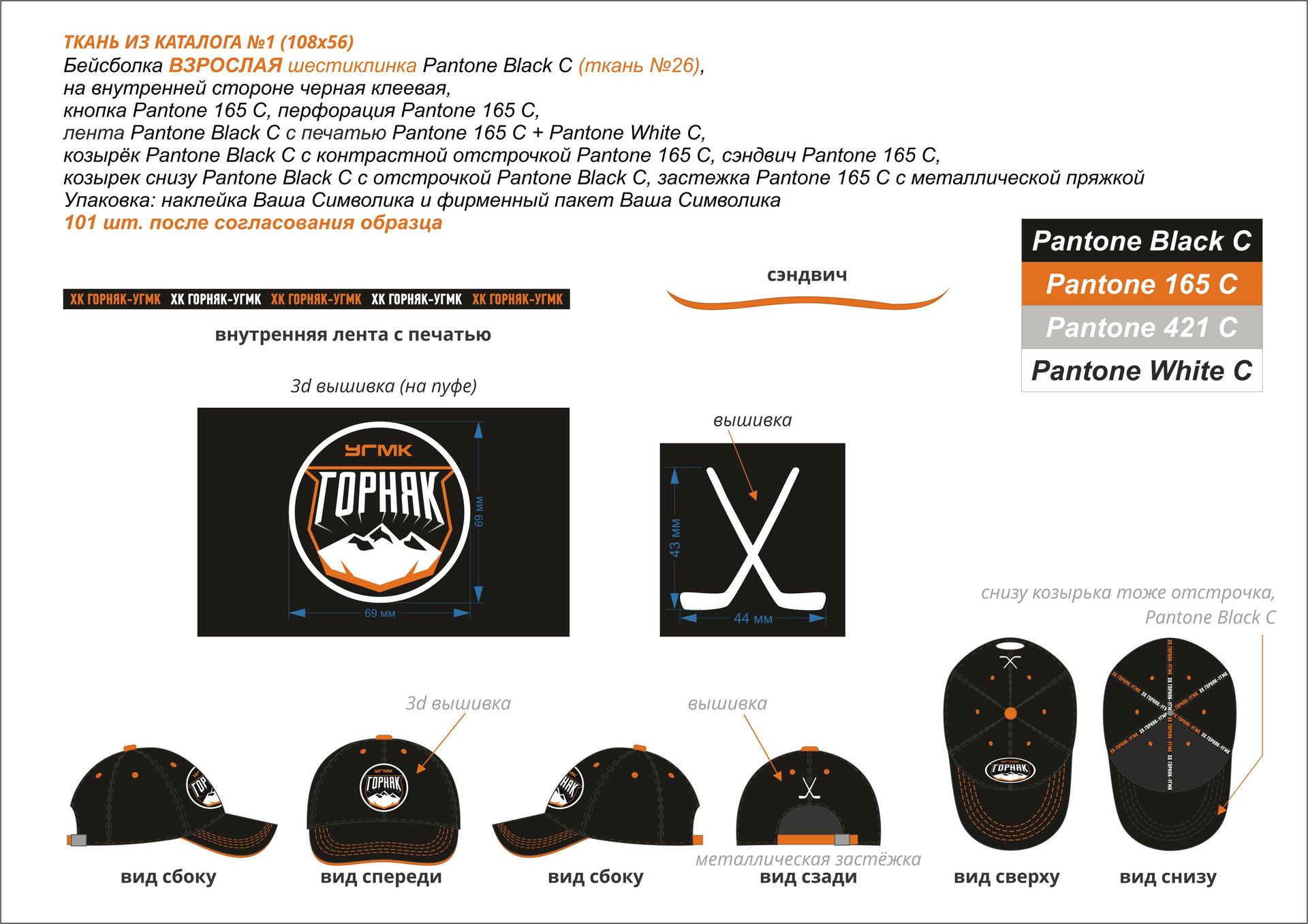 | Материл Кепки | х/б ткань стандартная арт.108х56 мелкий рубчик |